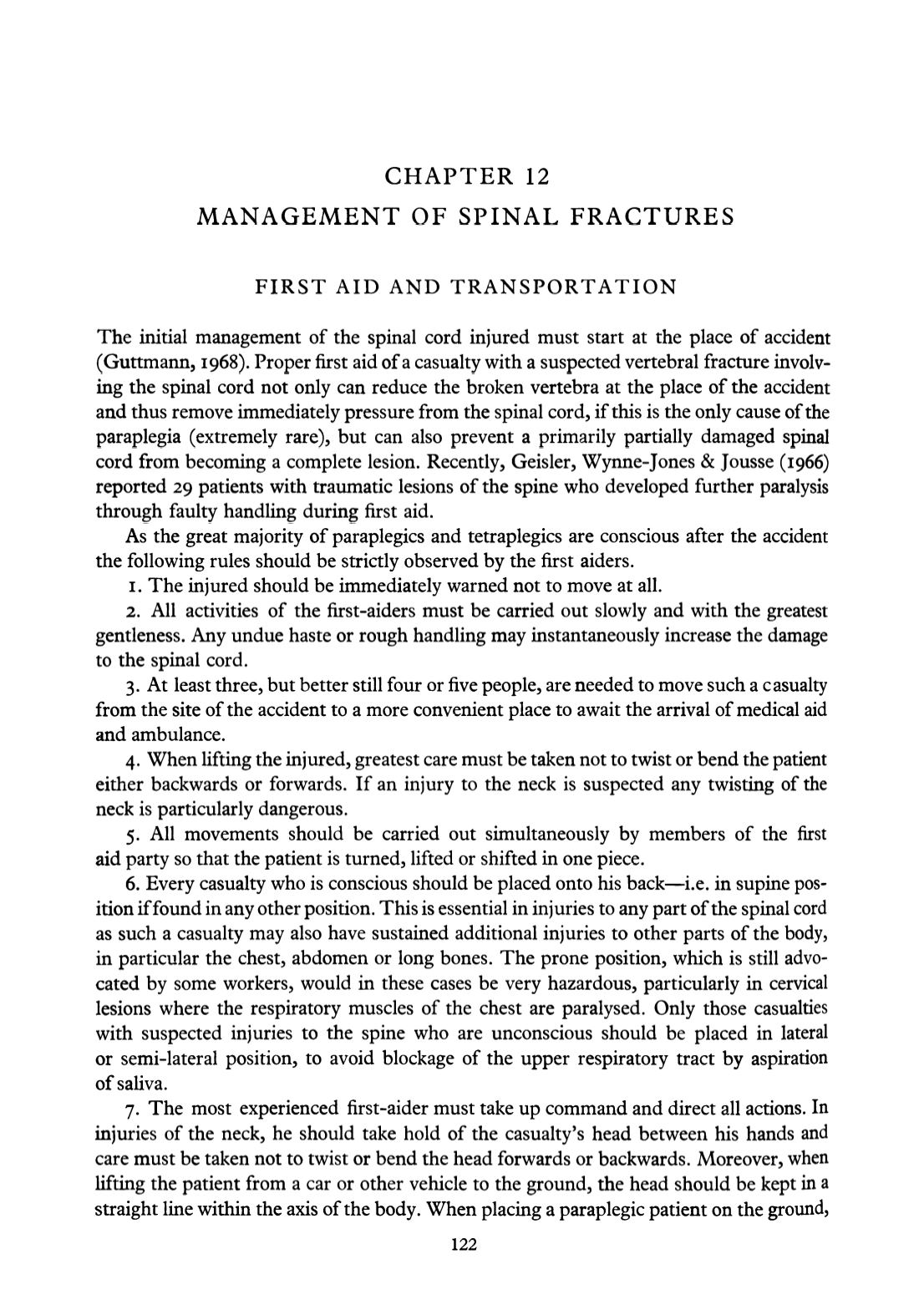 (Guttmann, 1968). Proper first aid of a casualty with a suspected vertebral fracture involv
