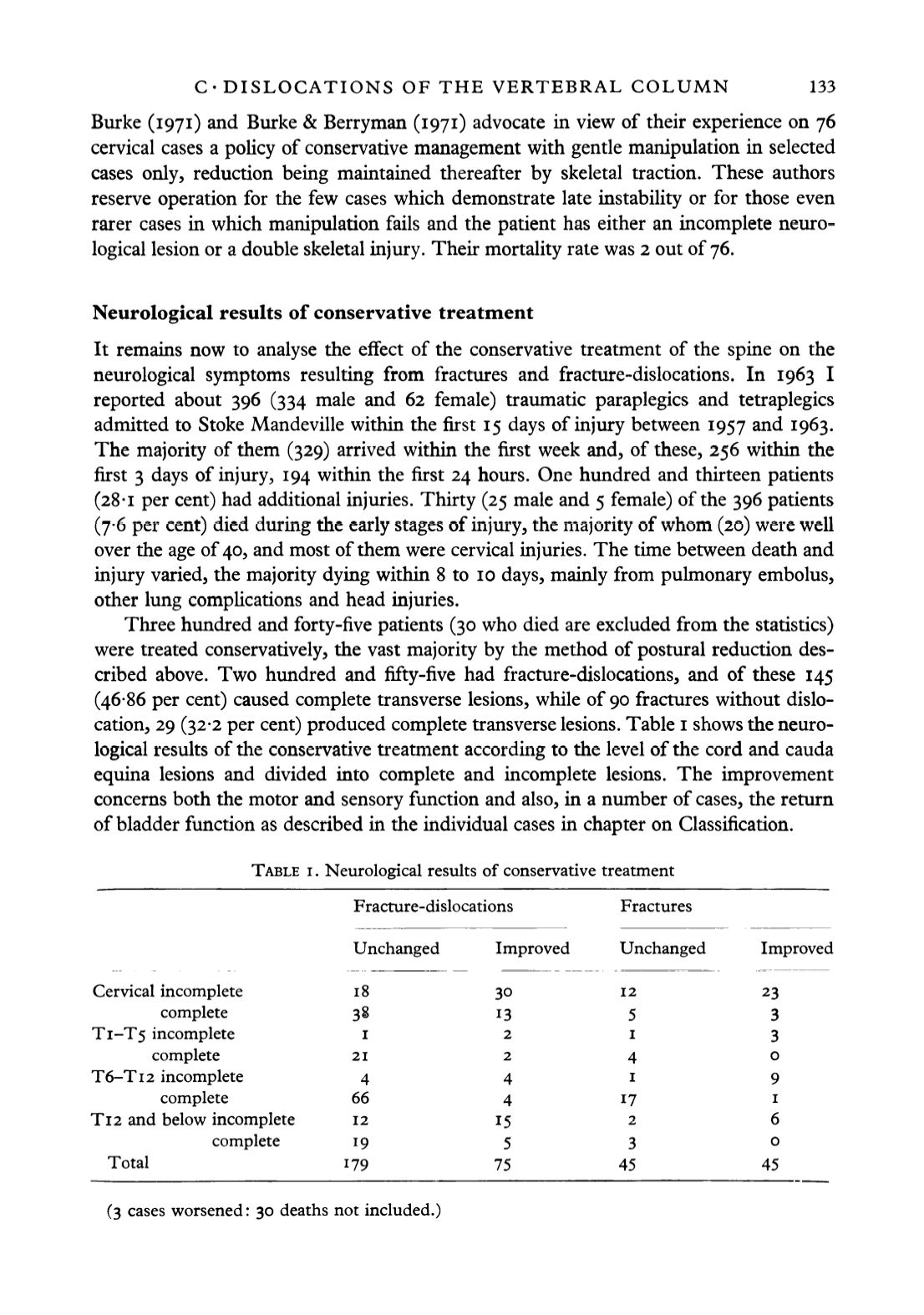 neurological symptoms resulting from fractures and fracture-dislocations. In 1963 I