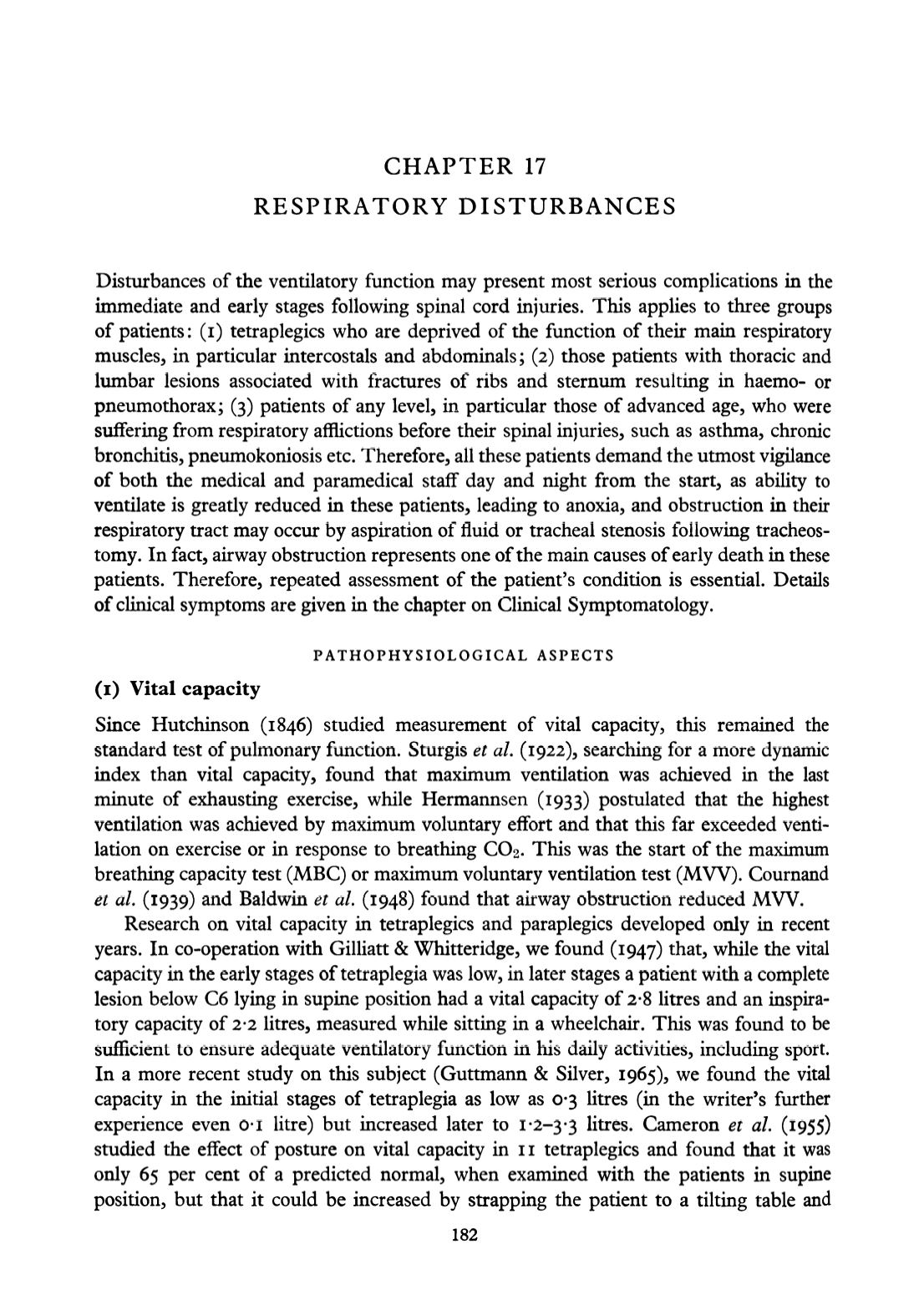 Research on vital capacity in tetraplegics and paraplegics developed only in recent