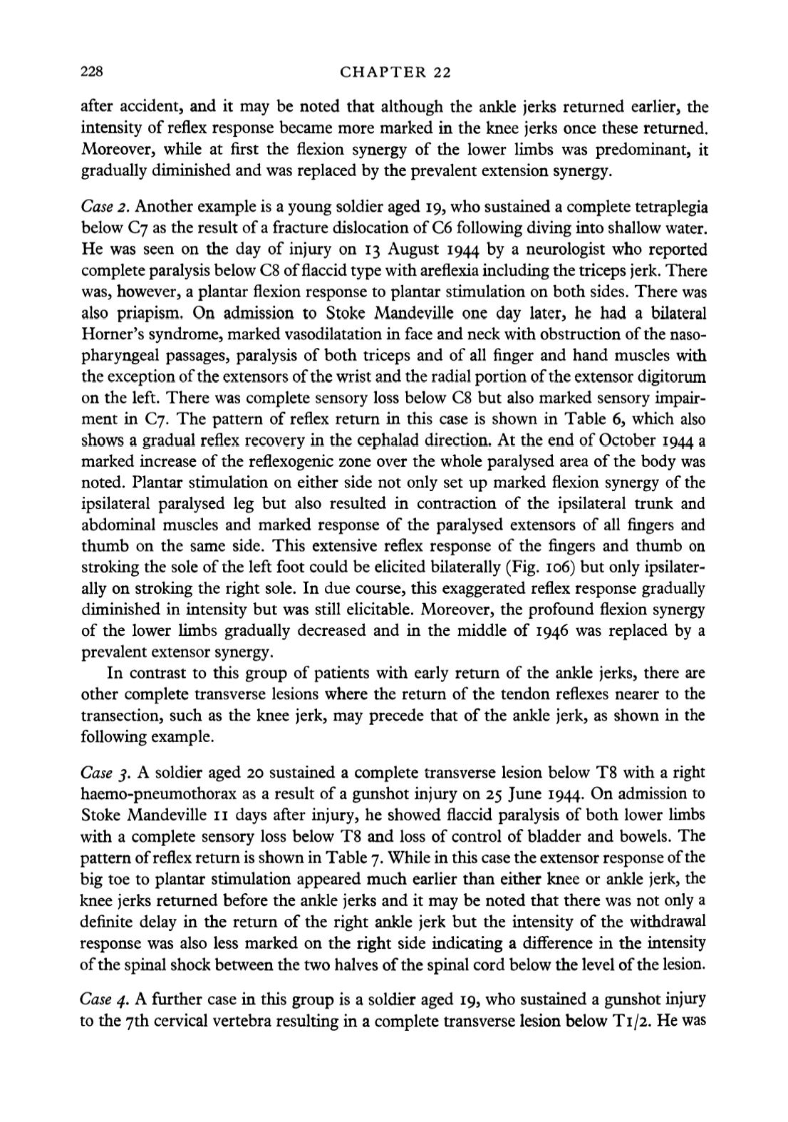 pattern of reflex return is shown in Table 7. While in this case the extensor response of the