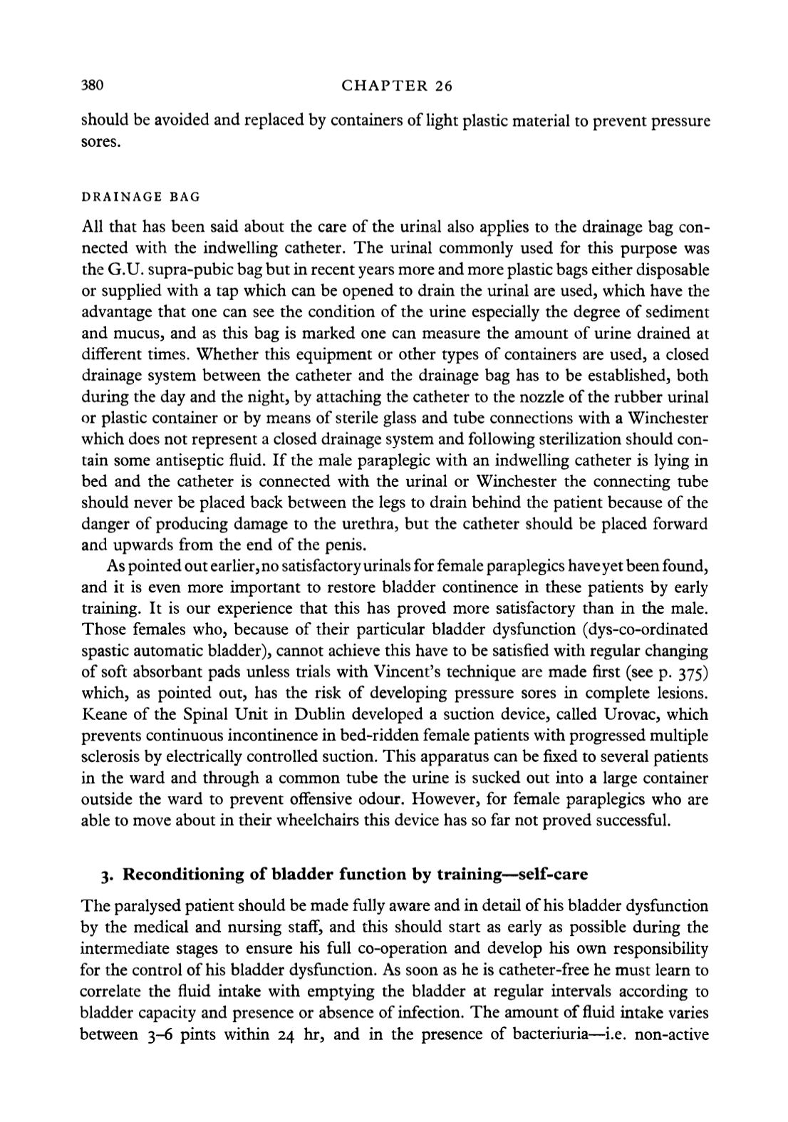 Keane of the Spinal Unit in Dublin developed a suction device, called Urovac, which