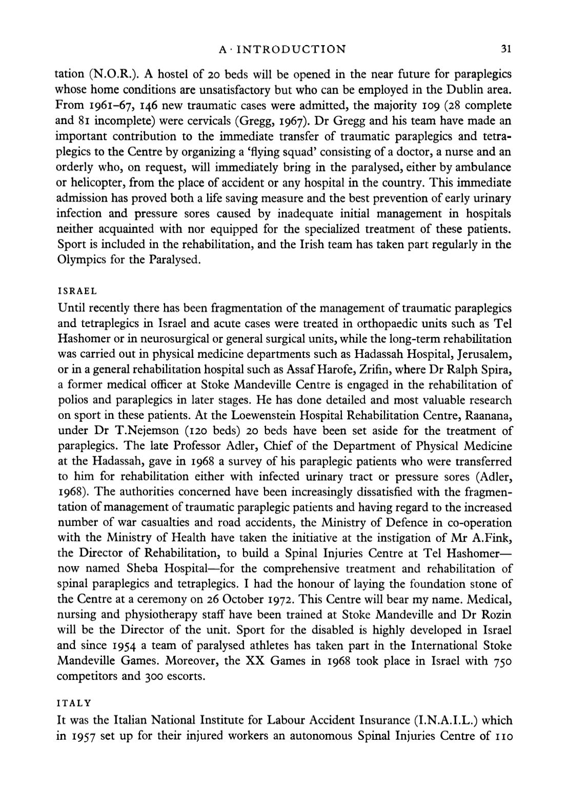 at the Hadassah, gave in 1968 a survey of his paraplegic patients who were transferred