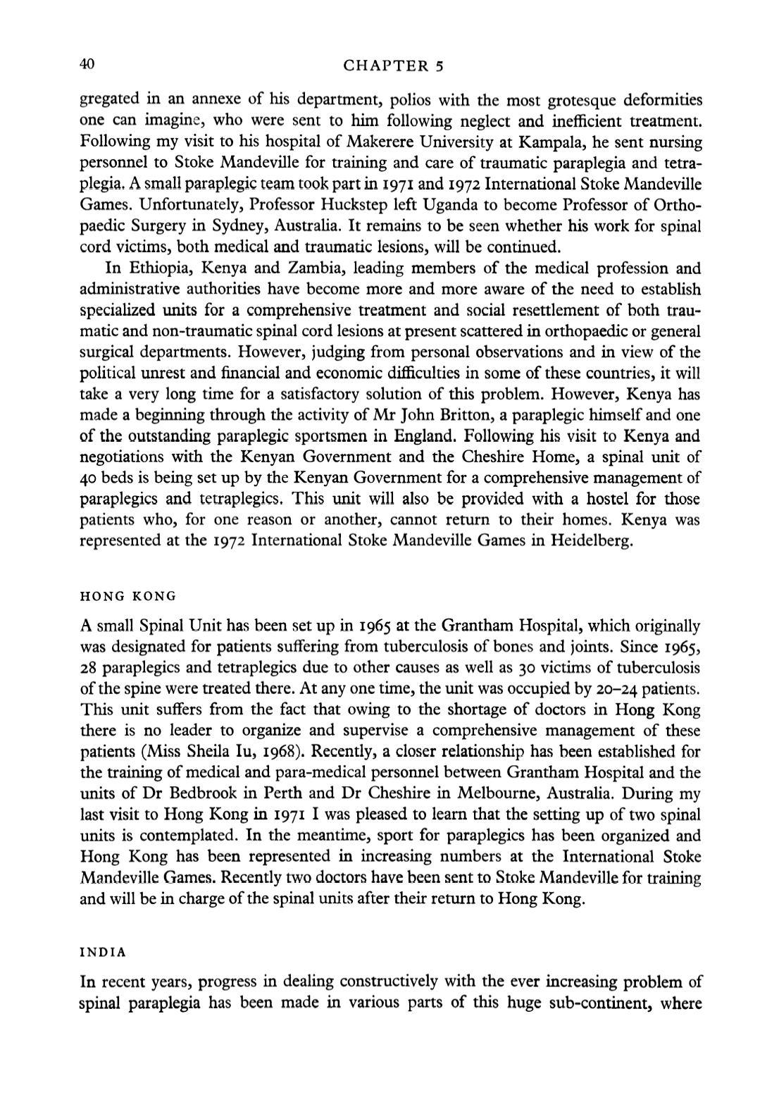 last visit to Hong Kong in 1971 I was pleased to learn that the setting up of two spinal